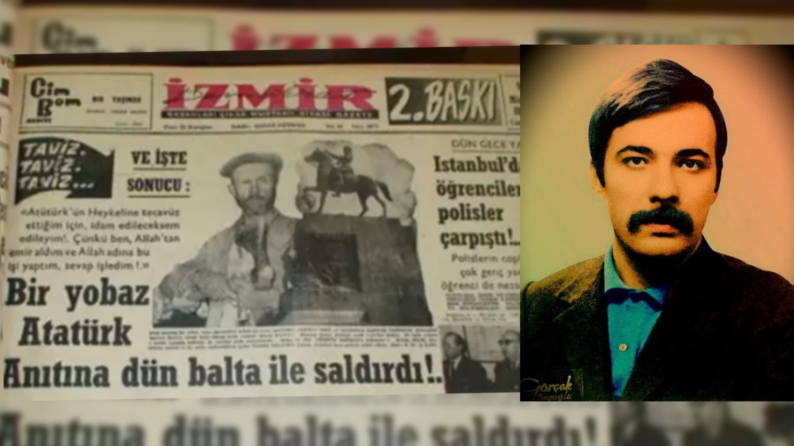 68 kuşağının Deniz Gezmiş’le birlikte simgeleşmiş ismi olan Mahir Çayan’ın ilk politik eylemi, 1966’nın Nisan ayında gerçekleşmişti. Adalet Partisi’nin sadece emperyalizme değil gericiliğe de kapıları sonuna kadar açtığı bir ortamda cumhuriyet ve Atatürk düşmanları sahaya inecek cesareti bulmuştu. Malatya, Antalya ve daha sonra da İzmir’de Atatürk büstlerine üst üste saldırmışlardı. Fakat işleri o kadar kolay olmayacaktı çünkü karşılarında devrimci Atatürk gençliği vardı.