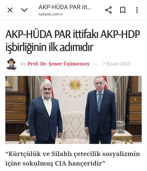 Çok hızlı gelişen süreçte Şener Hoca’nın politik yönünü bilmeyenler de bunun farkına vardı. Hoca, iki yıldan fazla süre önce (Nisan 2023) Türk Solu’nda yazdığı “AKP-HÜDA PAR ittifakı AKP-HDP işbirliğinin ilk adımıdır” başlıklı yazıda, o günlerde kimsenin beklemediği yeni ihanet sürecini tespit etmiş ve uyarmıştı. Yani Hoca, sadece jeolojik depremleri değil, siyasi ve toplumsal depremleri de önceden tespit ediyordu… Her ne kadar bu yazıdan ve Hoca’nın tespitlerinden bahsedenlerin bir kısmı, Hoca’nın bu yazılarının Türk Solu’nda çıktığını gizleseler de ortada gizlenemeyecek bir gerçek vardır: Şener Üşümezsoy, Türk Solcusudur!